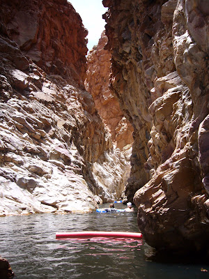 Anyway, we all walked from the parking lot to Redbank Gorge's beginning. We changed into our swimsuits and had to run across the hot sand to make it to the water. That's how you get through the gorge; you have to swim for while before walking or grappling up to the next place. Think of it like a series of locks on a canal.